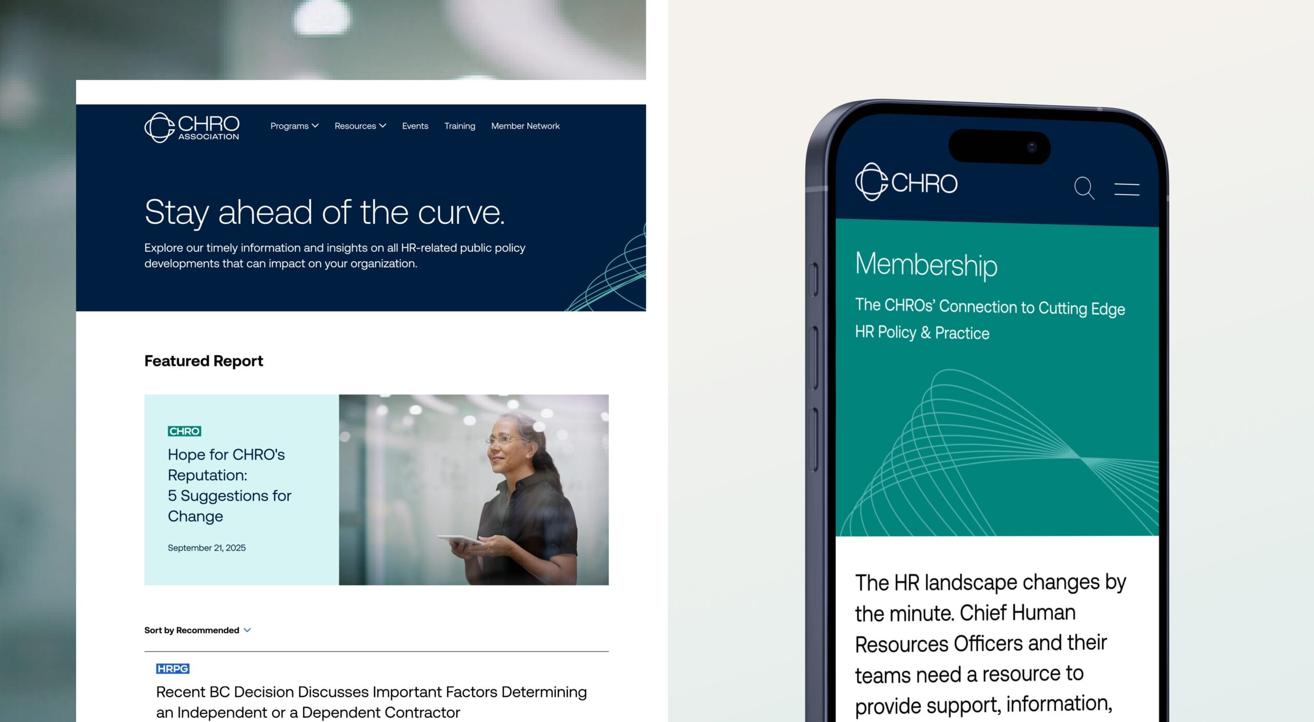 The CHRO Association is the premier global organization for Chief Human Resource Officers and their teams. Its 400 member organizations rely on the CHRO Association website for networking opportunities, practice guidance and expert public policy content. To fulfill its mission, the CHRO Association asked us for a website update that would 1) make it easier for current members to use and 2) entice potential members to join and access gated content.